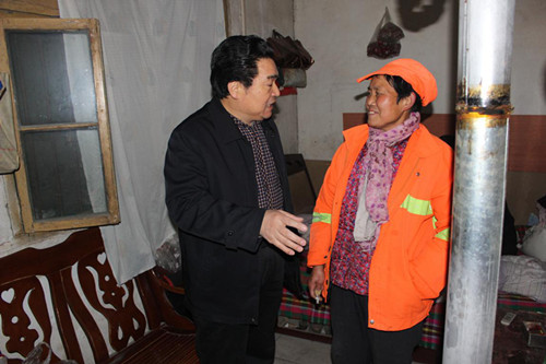 河南街小區(qū)保潔員王菊芹,家中子女常年在外與家里少有聯(lián)系,老伴又年老多病無法務工,還要撫養(yǎng)外孫上學,僅憑她做保潔的收入在河南街村租住了一間不及12平米的小屋作為三人的居所。趙明海首先感謝了她對公司默默作出的貢獻,鼓勵她說:“困難都是暫時的,要相信在城投集團的正確領導下,我們物業(yè)公司會越來越好,只要努力工作,公司會想方設法為職工解決困難!蓖瑫r要求工會和團支部要積極與上級溝通,取得支持,切實為困難職工辦實事,辦好事。王菊芹對公司領導在春節(jié)前夕前來看望慰問,激動地緊緊握住公司領導的手連聲表示感謝。