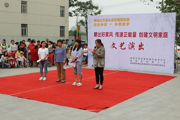 此次匯演,是推進(jìn)社會主義核心價值觀“六進(jìn)”活動的重要載體。從三月初,通過從河南街小區(qū)業(yè)主中,征集好家規(guī)好家訓(xùn)和編寫最美家庭故事的方式,最終甄選確定10戶業(yè)主,在匯演現(xiàn)場分享家法家規(guī),展示家庭“正能量”。在分享的間隙,由舞蹈、歌曲、戲曲等業(yè)主們喜聞樂見的文藝表演穿插其中,使小區(qū)業(yè)主在潛移默化中受到熏陶,增強(qiáng)認(rèn)可。