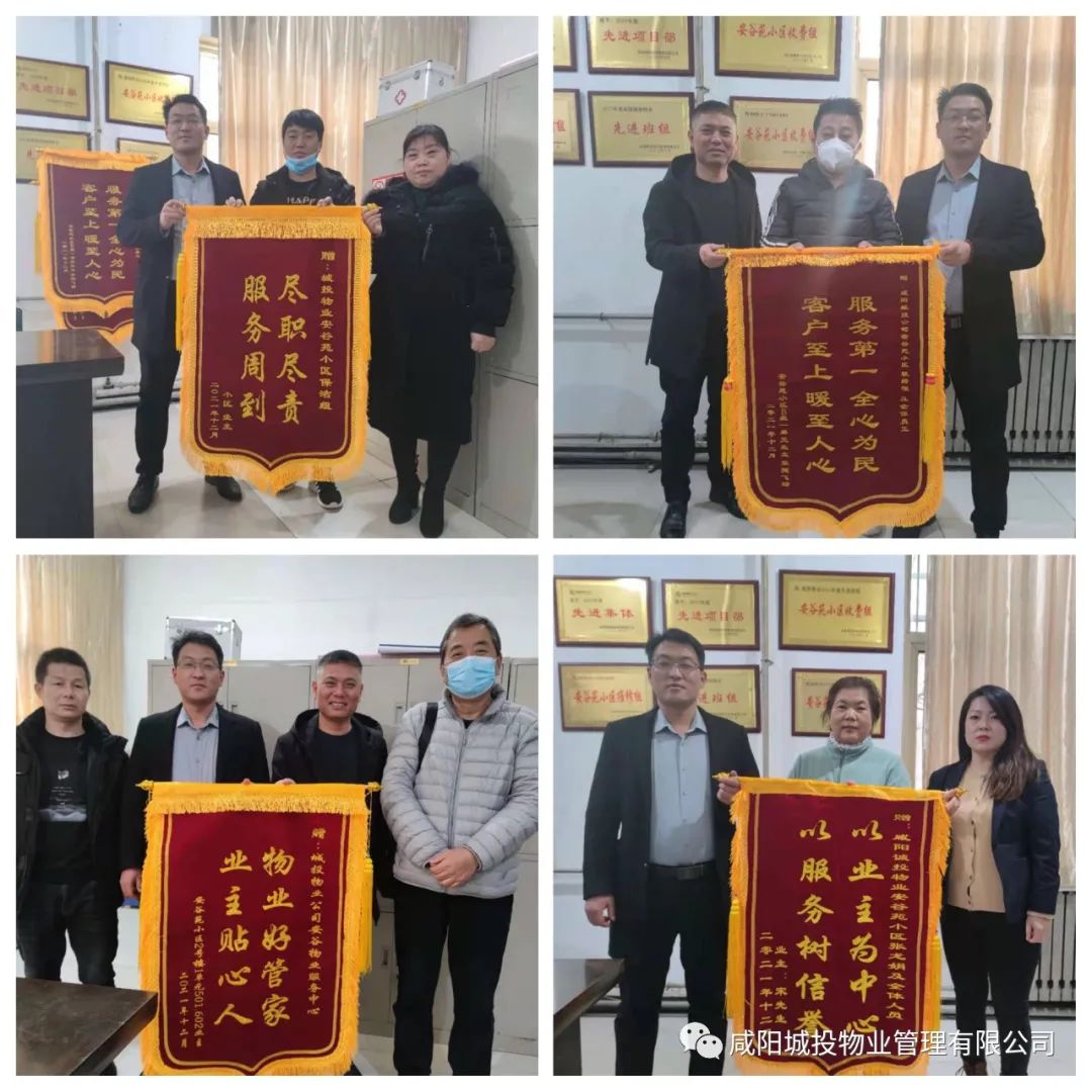 城投物業(yè)人懷著一顆真誠(chéng)待人的熱忱之心,在平凡的崗位上,想業(yè)主所想,急業(yè)主所急,以實(shí)際行動(dòng)踐行著“業(yè)主第一 服務(wù)至上”的宗旨。 近期,安谷苑小區(qū)陸續(xù)收到業(yè)主贈(zèng)送的錦旗,這一面面錦旗代表了業(yè)主對(duì)安谷苑服務(wù)中心全體工作人員細(xì)致入微、盡心盡責(zé)的工作表現(xiàn)的肯定和認(rèn)可。