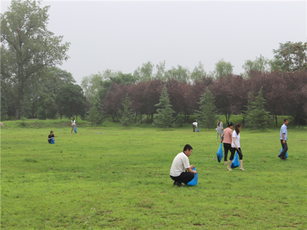 一大早,趙總親自帶隊,魏總協(xié)助配合,公司工會、團支部積極協(xié)調,合理將河南街、安谷苑、統(tǒng)一大樓、陜西中醫(yī)學院項目部以及機關人員分配于東西兩側草坪。在公司領導親力親為的感召下,全體員工干勁十足,經過近兩個小時的清理,還原了景區(qū)綠化的整潔環(huán)境。