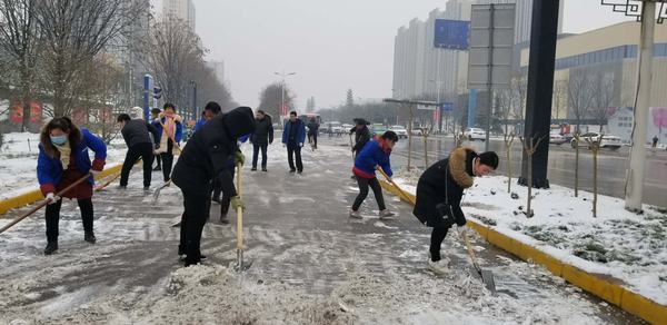1月25日上午,為了確保道路暢通和業(yè)主的出行安全,城投物業(yè)全體員工冒著凜冽的寒風(fēng),在總經(jīng)理趙明海的帶領(lǐng)下,兵分三路,對古渡廊橋、小區(qū)主干道、包抓路段積雪進(jìn)行清除。
